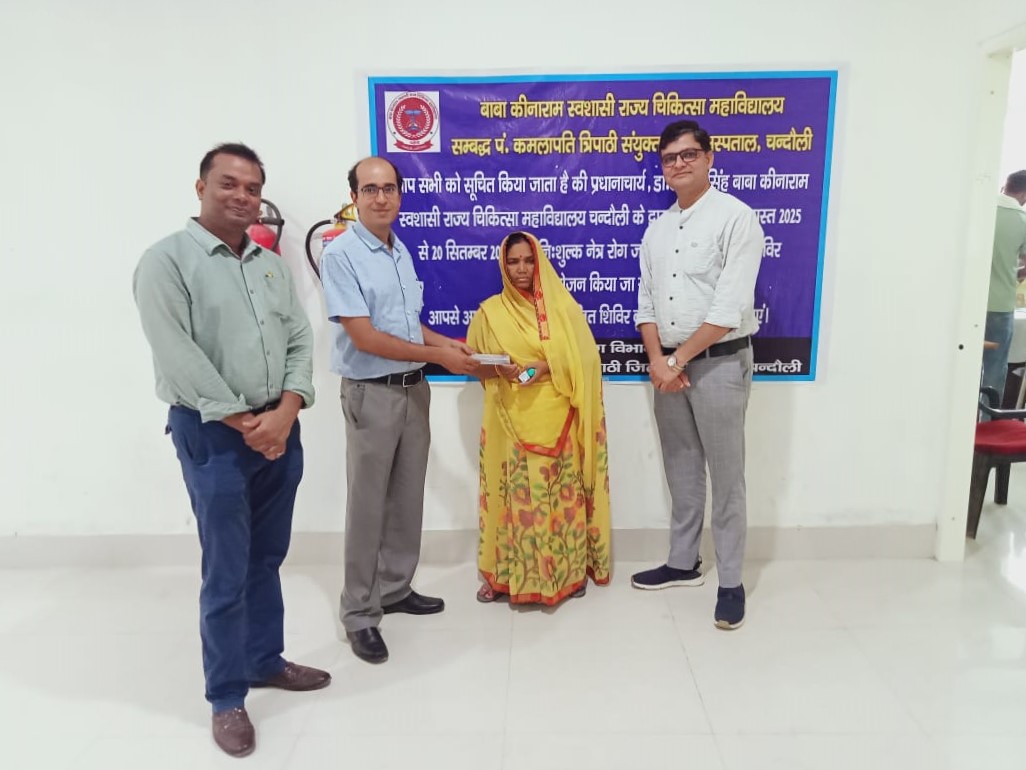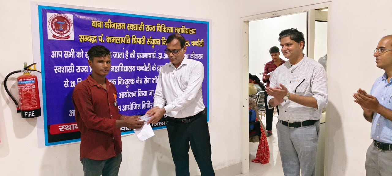प्रधानाचार्य (डॉ ० अमित सिंह ) बाबा कीनाराम स्वशासी राज्य चिकित्सा महाविद्यालय, चंदौली द्वारा आयोजित निशुल्क चश्मा वितरण शिविर